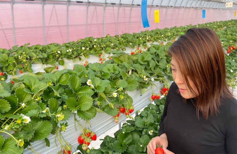 - ハウス内に最新のIOT技術を導入。いちごの生育に必要な光合成を最大限促進するよう自動で環境制御